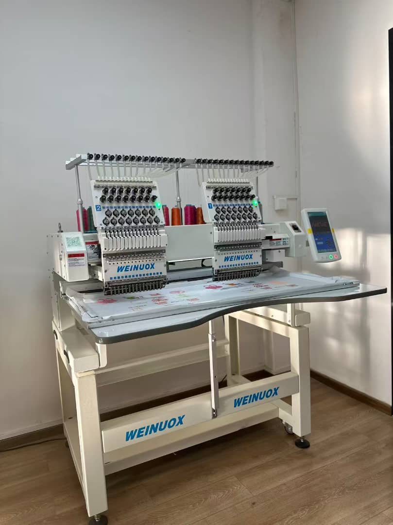 Double your output potential with the Two-Headed Monogram Machine. This setup features two independent embroidery heads working in synchronization, allowing you to produce two identical items simultaneously or manage two different small jobs at once (if the design changeover is quick). It’s the ideal intermediate step for businesses facing increasing order volume. You benefit from significantly reduced per-item production time without the massive footprint or initial investment of a large multi-head unit. Perfect for consistent, medium-volume production runs.